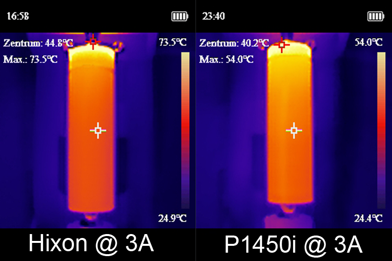 Diese Werte sind wie bereits erwähnt nur näherungsweise bestimmt. Es ist theoretisch denkbar, dass der ein oder andere Hersteller 14430er Zellen verbaut hat die bereits bei 1,5A (@3,6V) deutlich stärker einbrechen als hier angenommen. Dass das eher nicht der Fall ist, zeigt auch ein direkter Vergleich zwischen Hixon und P1450i. Beide haben eine Zelle mit identischer Maximalkapazität (980 mAh). Der P1450i ist bei 3A besser und seine Effizienz ist - errechnet - um 9% besser. Gemäß Energieerhaltungssatz geht Energie nicht verloren, sondern wird nur umgewandelt. Und das kann man im direkten Vergleich auch ohne Messgeräte bestätigen. Der ineffizientere Hixon wird deutlich wärmer.