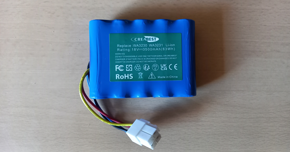 Ein originaler Akku kostet ca. 50€ von Worx. Warum dieser nur 2Ah hat, wo er doch aus fünf 18650er Zellen besteht, die es mittlerweile mit bis zu 4Ah gibt, weiß wohl nur Worx. Da es sich um einen Mähroboter handelt und nicht um ein Gerät mit sehr hoher Stromaufnahme, könnte man hier durchaus Zellen mit mehr Kapazität verwenden. Und Drittanbieter machen das auch, zumindest bewerben sie es. Ebay listet unzählige Angebote mit 3,5Ah. Diese kosten etwa 34€. Ein bisschen günstiger als der Originale Akku und fast die doppelte Kapazität. Ich habe einen dieser Akkus bestellt, von Creabest.