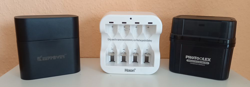 Das LC8 was ich damals bestellt hatte, war aus mehreren Gründen nicht ideal (für meinen Anwendungsfall): Es hatte keine Status LEDs über den Schächten und es konnte nur 1,5V Akkus laden, aber keine NiMH Akkus. Für die im Set enthaltenen Akkus hat es funktioniert, und da die Status LED bei diesem Akkus am Pluspol des Akkus selbst integriert war, funktioniert das LC8 auch in Kombination mit diesem Akkus. Hat man aber andere 1,5V Akkus geladen, die keine integrierte LED hatten, wusste man nicht, wann der Ladevorgang beendet war.